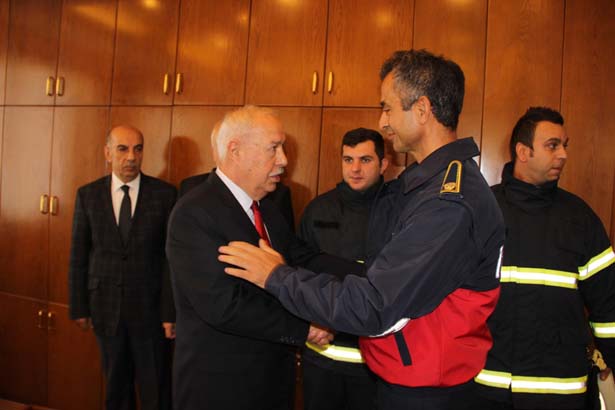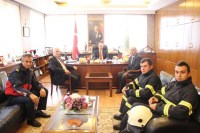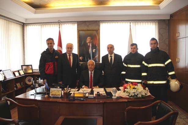 25 Eylül-1Ekim tarihleri arasında kutlanan (Yangından Korunma) İtfaiye Haftası kapsamında, Zonguldak Belediyesi İtfaiye Müdürü ve personeli Belediye Başkanı Muharrem Akdemir'i makamında ziyaret etti.