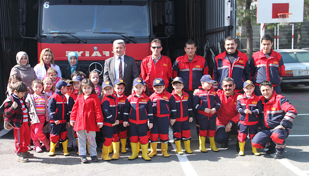 Kdz. Ereğli İzmirlioğlu İlköğretim Okulu'nun ana sınıfı öğrencileri, İlçe İtfaiye Müdürlüğü'nü ziyaret ederek hem bilgi aldı hem de itfaiyecilik mesleğinin püf noktalarını öğrendi. İtfaiyeci kıyafeti giyen minik öğrenciler, yangın ihbarı üzerine itfaiye aracı ile seyahat etme heyecanını da yaşadı.