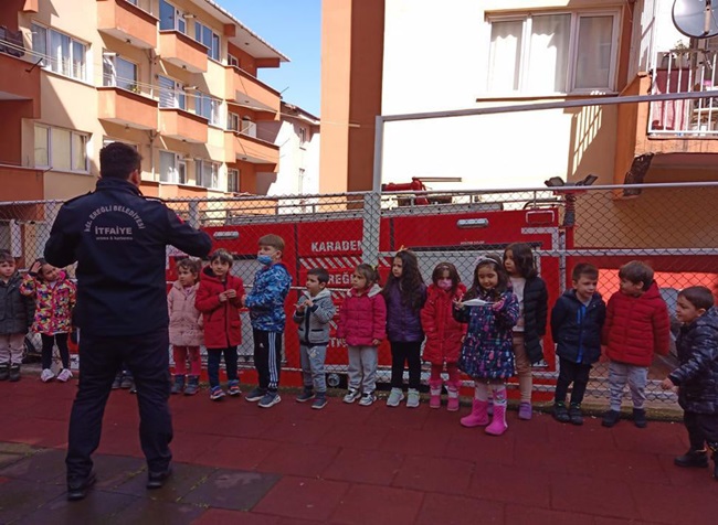 Konu ile ilgili olarak yapılan açıklamada “ Ereğli Belediyesi Kreşi öğrencilerine, Belediye İtfaiye Müdürlüğü ekipleri tarafından, itfaiyenin görevleri, itfaiyeci kıyafetleri, yanma ve yangın bilgisi anlatıldı. Öğrenciler, uygulamalı olarak itfaiye arabasından yangın evine su sıktı, temsili yangın söndürme işlemi yaptı. Eğitim sonunda öğrencilere Zeynep ile Mehmet isimli eğitici hikaye kitapları dağıtıldı”