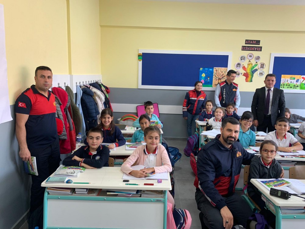 İtfaiyeciler, öğrencileri de çalışmaları hakkında bilgilendirdi, çocuklar için bastırılan ‘Zeynep ile Mehmet’ eğitici broşürlerini dağıttı. Bütün çocuklara çağrı merkezi telefonunun artık 112 olduğu bir kez daha hatırlatıldı.