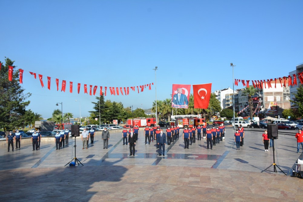 Belediye Başkan Yardımcısı Atilla Bulak, İtfaiye Müdürü Muhammet Ali Ateş ve İtfaiye personeli Atatürk Anıtı’na çelenk sundu, saygı duruşunda bulunarak İstiklal Marşı’nı okudu.