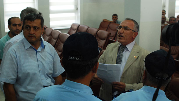 Salona girdiği andan itibaren bu toplantının kanunsuz olduğunu iddia eden Yusuf Kalay, elindeki kağıtlarda, konuya ilişkin kanun maddelerinin yazılı olduğunu söyleyerek, bu kağıtları Posbıyık'a vermek istedi. Kağıtları ısrarla almak istemeyen Posbıyık, huzuru bozduğu gerekçesiyle Kalay'ı dışarı çıkması yönünde uyardı. Karşılıklı 'çok sert' konuşmaların yaşandığı o anlarda, zabıta ekipleri de devreye girdi. Posbıyık emriyle hareket eden Zabıta amiri ve elamanları Kalay'ı kolundan tutup dışarı atmak istedi.