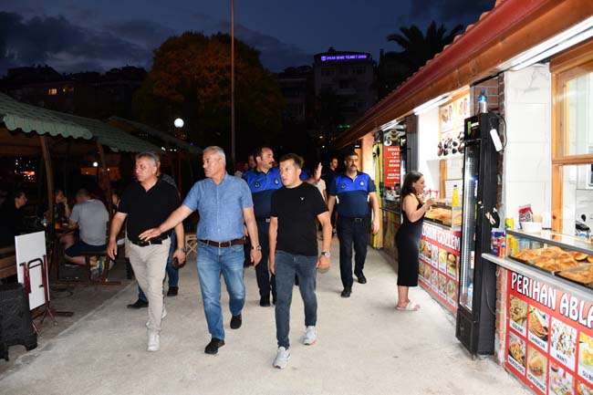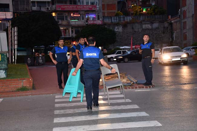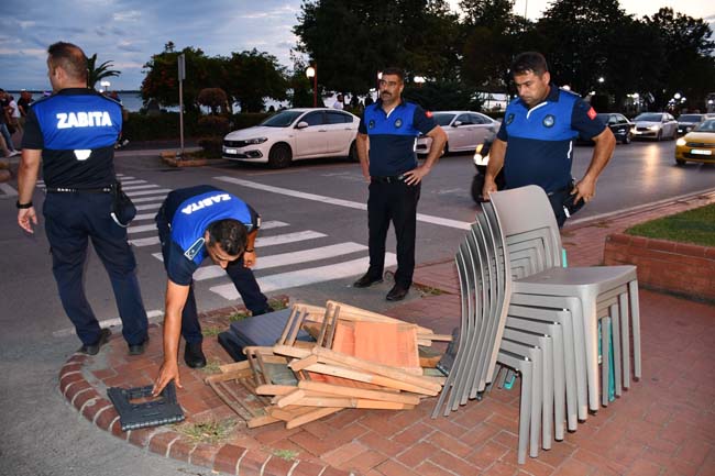 3 kilometrelik sahil boyunda bulunan seyyar satıcılar, dondurmacılar, midye ve kokoreççiler ile diğer işyerlerinde yapılan izinsiz işgalleri kaldırıldı. Ticari amaçla çimlerin üzerine konulan 120 plastik sandalye zabıta ekiplerince müsadere edildi.