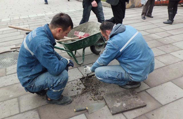 Ereğli belediyesi ekipleri tahrip olan kaldırımların onarımını yaparak karın izlrini silmeye çalışıyor...