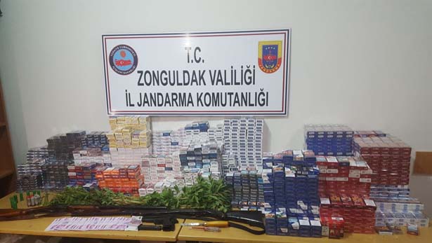 muhtelif cins ve marka sigara, çalıntı otomobil, 2 adet av tüfeği, 1 adet