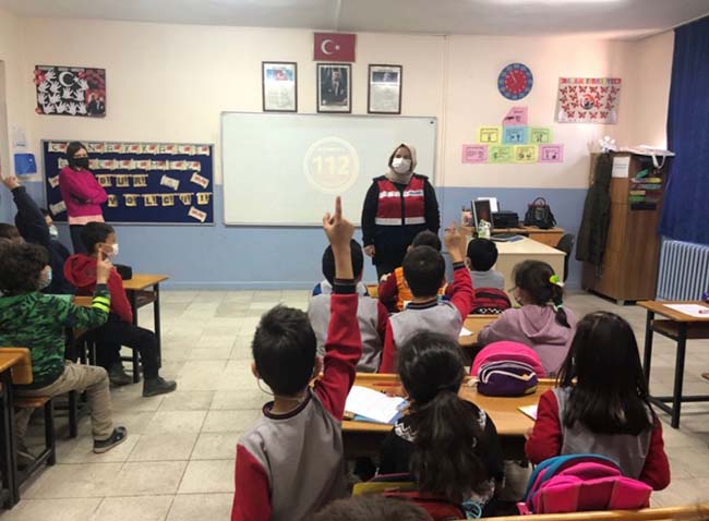“Zonguldak İl Jandarma Komutanlığı, Aile İçi Şiddetle Mücadele ve Çocuk Kısım Amirliğince 16.03.2022 günü Gökçebey/Bakacakkadı İlköğretim Okulu ziyaret edilerek, çocuklara “Kişisel Güvenlik ve Suçtan Korunma” yöntemleri hakkında bilgilendirme yapılmıştır.