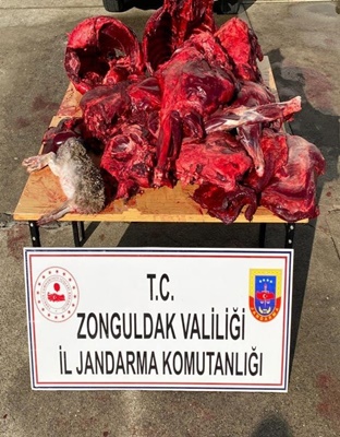 Zonguldak’ta jandarma ekipleri yaban hayvanı avlayacakları ihbarını aldıkları aracı durdurdu. Araçtan 300 kilogram yabani hayvan eti ile av tüfeği ve fişek ele geçirildi.