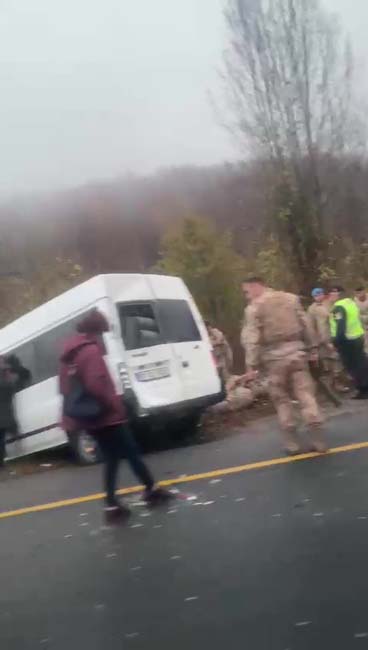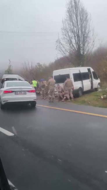 Düzce’de meydana gelen deprem sonrası destek için kente gelen Jandarma ekiplerinin içinde bulunduğunu minibüs dönüş yolunda kaza yaptı. 6 kişi hafif yaralandı.