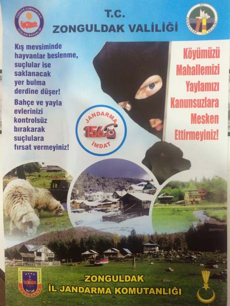 Zonguldak Alaplı İlçe Jandarma Komutanlığı, ilçenin tüm köylerinde düzenlediği toplantılarla hırsızlık önlemlerine karşı hem broşür dağıtarak halkı bilgilendiriyor.