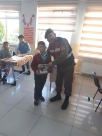 aplı İlçe Jandarma Komutanlığı'nda görevli Asayiş Tim Komutanı Uzman Jandarma Kd. Çvş. İsmail Türkenoğlu ve okul müdürü ile öğretmenler, öğrenciler katıldı. Alaplı ilçesine bağlı Kasımlı ilk ve ortaokulu önünde trafik tedbirleri alan jandarma ekipleri, yarıyıl tatili nedeniyle, öğrenciler karne dağıttı. Türkmenoğlu, öğrencilere karne dağıtırken, emniyet ve asayiş konularında uyarılarda bulunmayı ihmal etmedi. Uzman Jandarma Kd. Çvş. İsmail Turkmenoğlu öğrencilere, okul çevresinde gördükleri şüpheli kişi veya kişileri hemen okul idaresine bildirmelerini, tanımadıkları kişilerden hiçbir şey almamalarını ve tatilde bol bol dinlenmelerini istedi. Öğrencilere trafik kurallarına mutlaka uymalarını ve çevredeki herkesin trafik kurallarına karşı duyarlı olmalarını istedi. Asker kıyafeti giyen bir çocukla komutan arasında geçen diyalog ise eğlenceli dakikalar yaşattı. Karne dağıtımı esnasında jandarma tarafından öğrencilere cetvel, çikolata ve trafik bilgilendirme broşürleri dağıtıldı.
