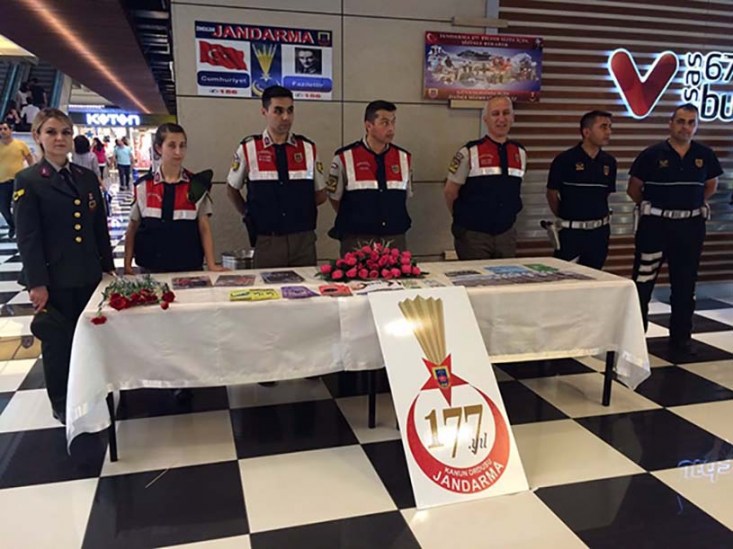 Jandarma Komutanlığı, teşkilatın 177'inci kuruluş yıl dönümü kutlamaları nedeniyle vatandaşlara çeşitli hediyeler dağıtıldı. Zonguldak İl Jandarma Komutanlığı tarafından bir alışveriş merkezinde düzenlenen etkinlikte, jandarma görevlileri vatandaşlara üzerinde Jandarma Komutanlığı2nın logosu olan anahtarlık, harita, yapboz, şapka, broşür, karanfil, magnet, araç ruhsat kılıfı gibi çeşitli hediyeler dağıttı.