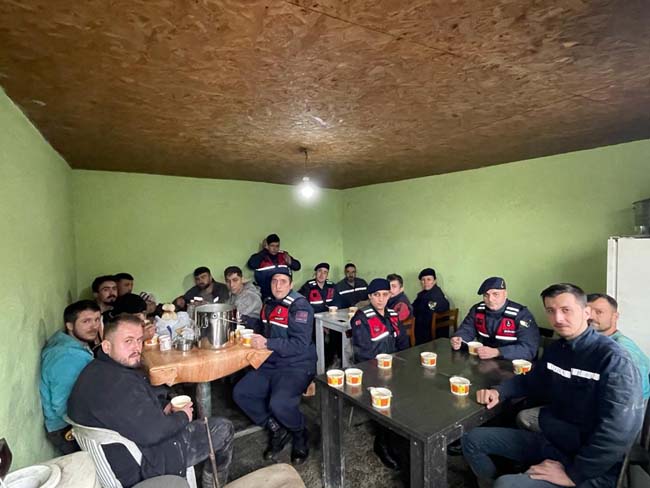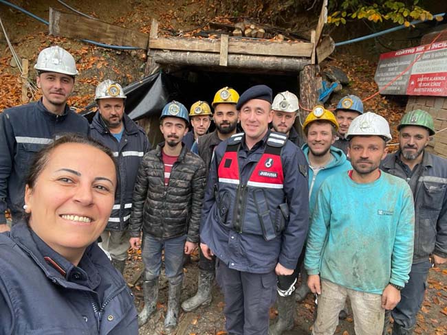Zonguldak İl Jandarma Komutanlığı Ekipleri, 04 Aralık Dünya Madenciler Günü dolayısıyla Kozlu Maden Ocağında çalışan madencileri ziyaret edilerek, vardiya çıkışında işçilerle yemek yiyerek günlerini kutladılar.ü