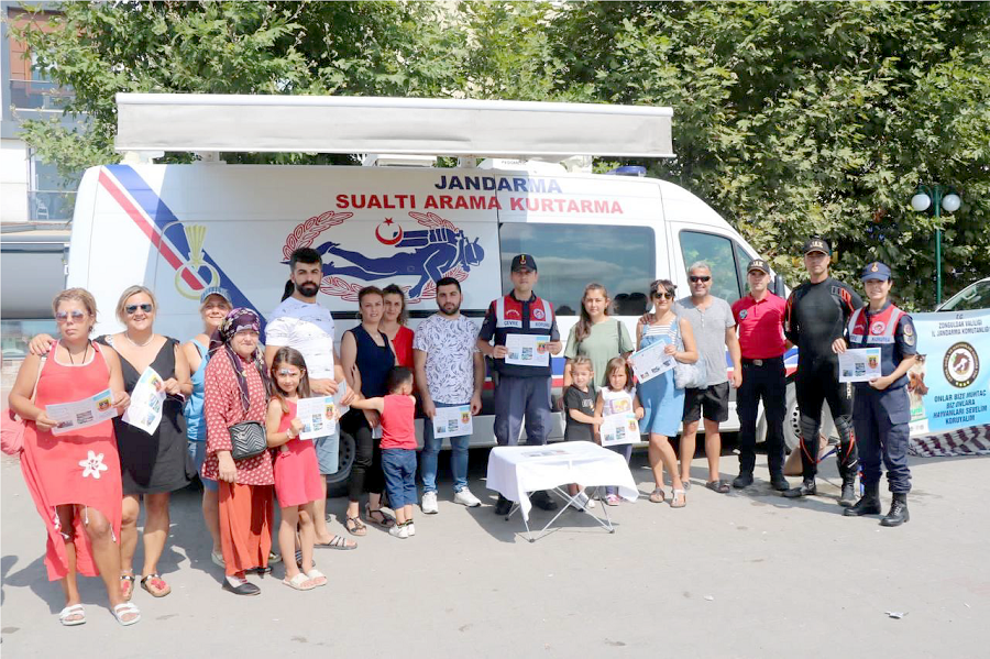 Zonguldak İl Jandarma Komutanlığına bağlı Çevre, Doğa ve Hayvanları Koruma Timi, Atlı Jandarma Timi, Sualtı Arama Kurtarma Timi (SAK), Bomba Arama Köpek Unsuru ve Kadın Çocuk Kısım Amirliği ve Jandarma Asayiş Timlerince, Çaycuma ilçesine bağlı Filyos beldesinde bulunan sahili bölgesinde denize giren vatandaşlara "Suda Boğulma Olaylarına Karşı Tedbirli Olmaları, Çevrenin Temiz Tutulması ve HAYDİ" uygulamasında farkındalık oluşturmak maksadıyla bilgilendirme yapılarak broşür dağıtıldı.