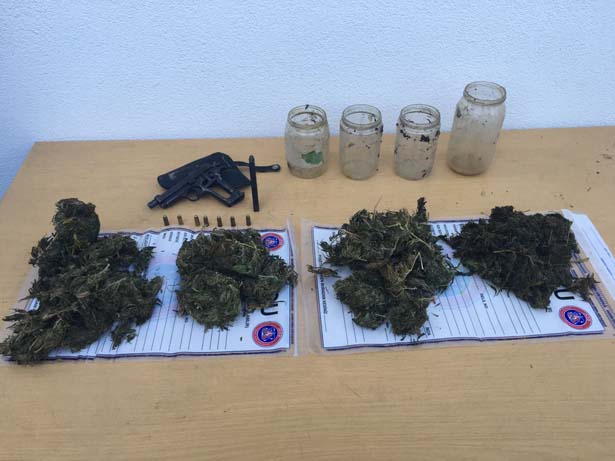 Zonguldak'ın Ereğli ilçesinde Jandarma Ekipleri tarafından şüphe üzerine durdurulan Y.Ş'nin üzerinde bir adet ruhsatsız silah ile cam kavanozlara konmuş şekilde 1 kilo esrar maddesi ele geçirildi.