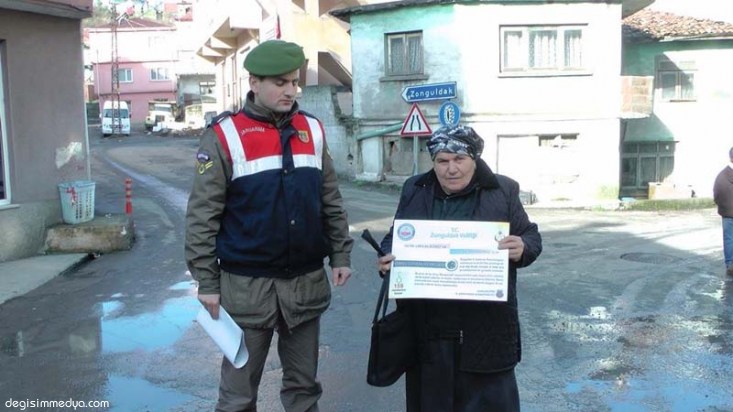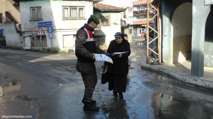 Zonguldak'ın Kilimli ilçesine bağlı Türkali Köyü'nde, Işıkveren Jandarma Karakol Komutanlığı tarafından vatandaşlara dolandırıcılık olaylarına karşı broşür dağıtıldı.