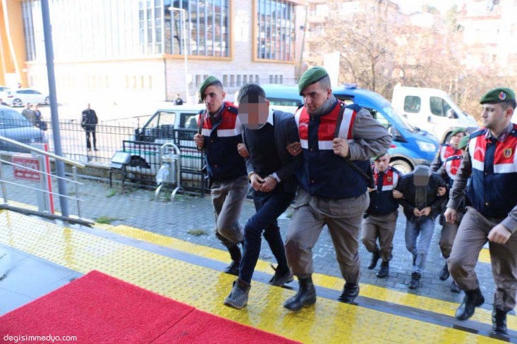 İlçe Jandarma komutanlığında ifadeleri alınan Y.Y., U.Ç., E.K. ve Ş.Y. adliyeye sevk edildi.