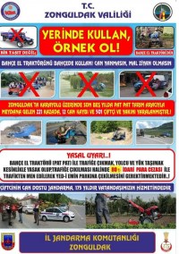 31 Mart 2015 tarihinde sona erecek olan bir başka proje ise "Yerinde Kullan, Örnek Ol" projesi oldu. Proje kapsamında Bahçe el traktörünün bahçede kullanılması öngörülüyor. Bildiride, "Zonguldak'ta karayolu üzerinde son beş yılda pat pat tarım aracıyla meydana gelen 22 kazada, 12 can kaybı ve 501 çiftçi ve yakını yaralanmıştır. Bahçe el traktörü (pat pat) ile trafiğe çıkmak, yolcu ve yük taşımak kesinlikle yasak olup, trafiğe çıkılması halinde 80 TL idari para cezası ile trafikten men edilerek Yed-i Emin parkına çekilmesini gerektirmektedir" denildi.