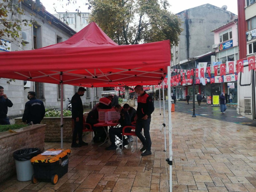 Kızılay Kan Merkezi tarafından Jandarma personelinin katılımı ile Alaplı Merkez Camii önündeki Cumhuriyet meydanında gerçekleştirilen kan bağışı faaliyetine İlçe Jandarma Komutanı Astsubay Kıdemli Başçavuş Ergün Gündoğar ve jandarma personelinin yanı sıra, İlçede faaliyet gösteren STK’lar ve muhtarlar katıldı. Düzenlenen etkinlikte toplam 70 ünite kan bağışı yapıldı. Kızılay Kan Merkezi yetkilileri, iş yoğunluğuna rağmen kan bağışında bulunan jandarma personeline teşekkür etti.