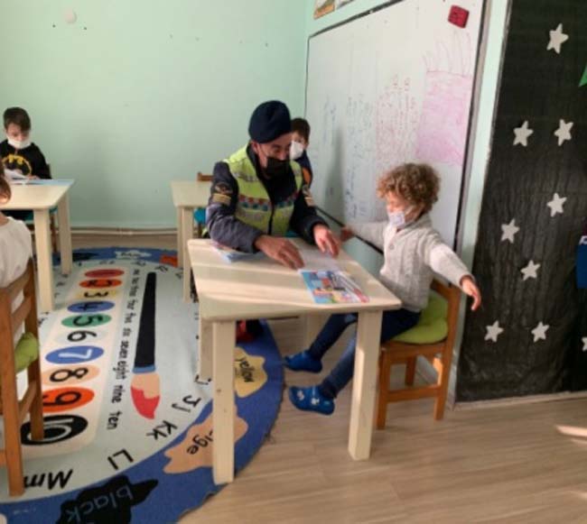 “Zonguldak İl Jandarma Komutanlığınca, 2021-2022 Eğitim-Öğretim Yılı içerisinde sorumluluk sahasında bulunan okullarda planlanan trafik eğitim seminerleri çerçevesinde; 06.01.2022 günü Jandarma Trafik Timlerince öğrencilere yönelik olarak trafik seminerleri verilmiş, öğrencilere trafik temalı boyama kitapları dağıtılarak, trafik kuralları hakkında bilgi edinmeleri sağlanmıştır.
