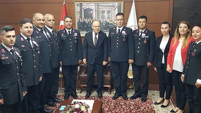 Zonguldak İl Jandarma Komutanı Kıdemli Albay Cezmi Yalınkılıç ve beraberindeki heyet, Jandarma Teşkilatı'nın 183. kuruluş yıldönümünde Vali Mustafa Tutulmaz'ı ziyaret etti