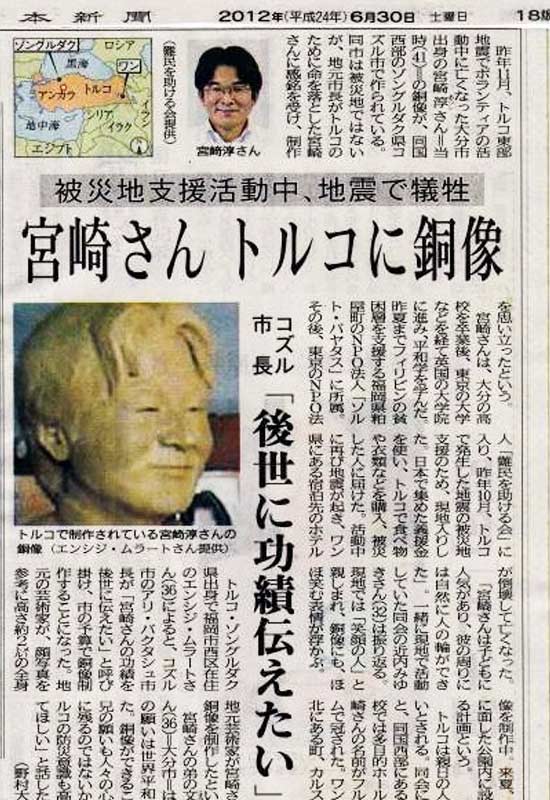Van Depremi'nde ölen Japon Dr Miyazaki Atsushi'nin Türkiye'de yapılacak olan heykeli, dünyanın ve Japonya'nın en çok satan gazetelerinden Nishi Nihon Shinbun gazetesinde yer buldu.
