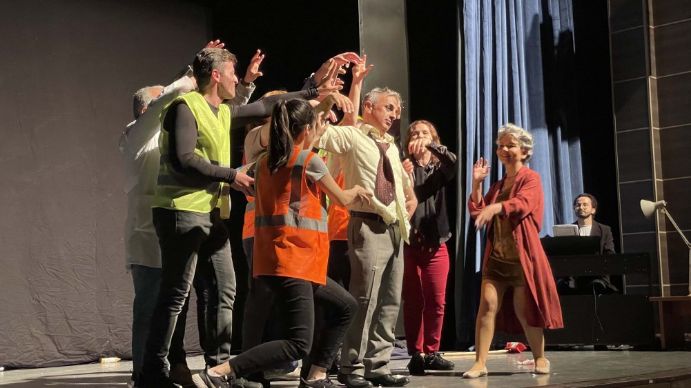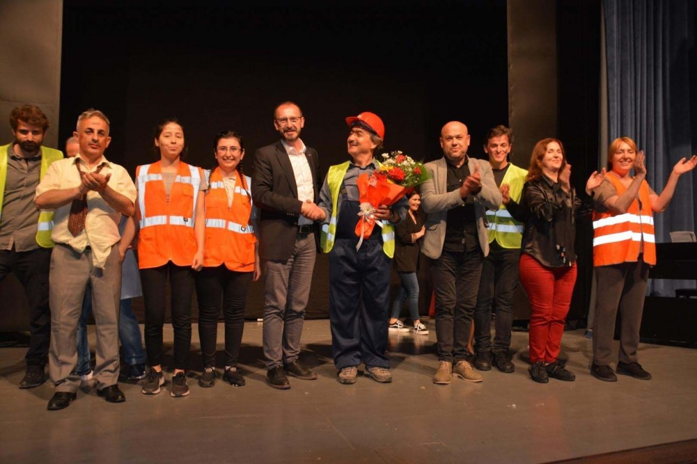 Dolu dolu geçen sahne sonrası oyuncular, tiyatroseverler tarafından ayakta alkışlandı.