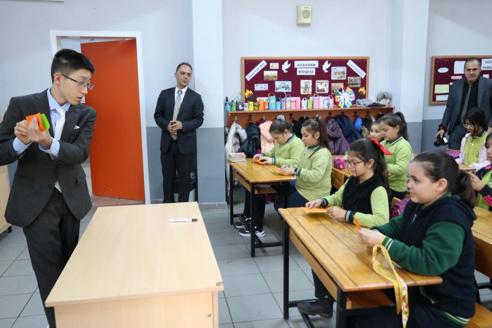 Japonya’da ailesiyle birlikte yaşayan 14 yaşındaki Haluk Enşici bir dizi ziyaret ve etkinlik için geldiği Zonguldak’ta beşinci sınıf öğrencileri ile birlikte Japon kağıt katlama sanatı olan Origami etkinliği gerçekleştirdi.