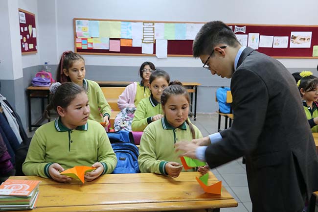 Japonya’dan geldi, öğrencilere origami sanatını öğretti