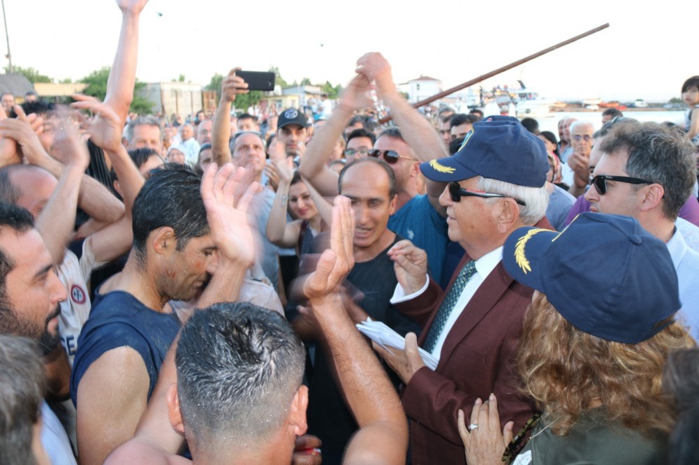 Etkinliklerin son bölümünde yağlı direk yarışları yapıldı. Bozhene’li gençler, yağlı direğin ucundaki Türk Bayrağını alabilmek için uzun süre uğraş verdi. Belediye Başkanı Halil Posbıyık, yağlı direk yarışlarının ödülünü 15 bin TL olarak açıkladı, alandakiler Başkan Posbıyık’a sevgi gösterilerinde bulundu. Yarışçıların uzun süre yağlı direkte mücadele ettiği esnada, Posbıyık ödülü 18 bin liraya yükseltti. Liman Başkanlığı’nın da 2 bin lira eklemesiyle ödül 20 bin lira olarak belirlendi.
