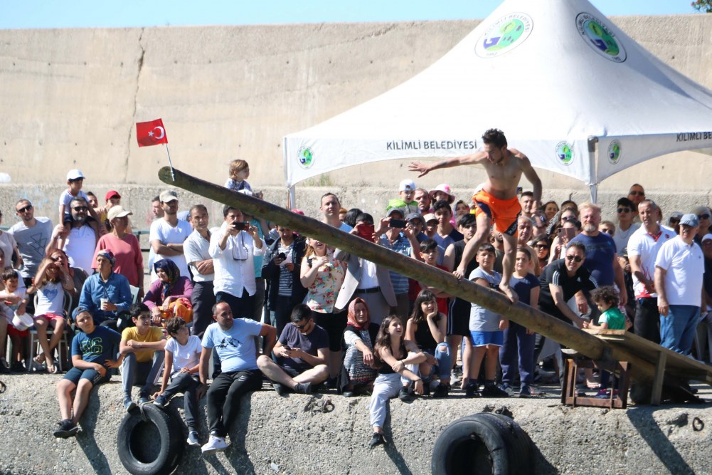 Zonguldak'ın Kilimli ilçesinde Kabotaj Bayramı etkinlikleri renkli görüntülere sahne oldu. Yüzme yarışlarının yanı sıra yağlı direkten bayrağı alma yarışmasında vatandaşlar kıyasıya mücadele verdi.