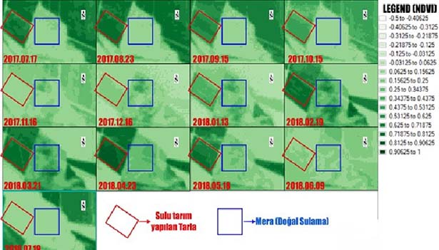 kahverengi olan alanlar su içeriği düşük veya sulanmamış alanlar olarak