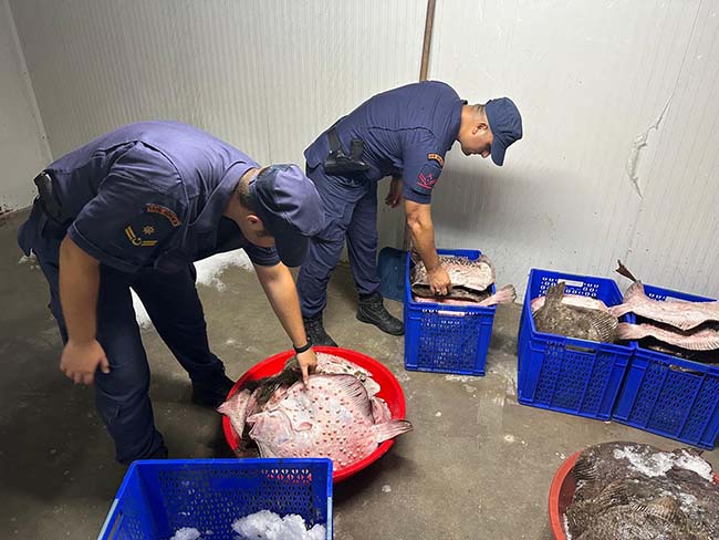 Edinilen bilgiye göre, Sahil Güvenlik Komutanlığı Çaycuma Deniz Güvenlik Tim Komutanlığı ekipleri, Kilimli Limanı'na yanaşan bir balıkçı teknesinde denetim gerçekleştirdi. Yapılan kontrolde, yasa dışı avcılıktan elde edildiği belirlenen 114 kalkan balığı ile kaçak avcılıkta kullanılan 14 bin metre kalkan ağı tespit edildi.