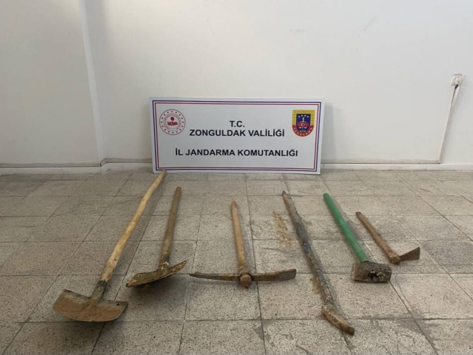 "28 Şubat 2023 günü Alaplı ilçesi mülki sınırları içerisinde icra edilen operasyonda; (4) şahıs kaçak kazı yaptığı esnada, (2) adet kazma, (2) adet kürek, (1) adet balyoz, (1) adet manilya (kaya sökmek için), (1) adet tek ağızlı bahçe çapası ile birlikte suçüstü yakalanmıştır. Olayla ilgili Cumhuriyet Başsavcılığının talimatları doğrultusunda şüpheli (4) şahsın ifadeleri alınarak serbest bırakılmıştır" denildi.