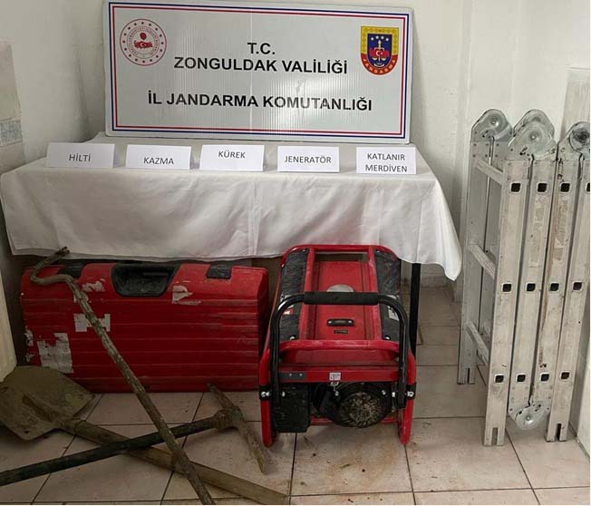 “Zonguldak İl Jandarma Komutanlığı ekiplerince 23 Mart 2023 günü Çaycuma ilçesi mülki sınırları içerisinde icra edilen operasyonda; (10) şahıs kaçak kazı yaptığı esnada, (1) adet jeneratör, (1) adet hilti, (1) adet merdiven, (2) adet manivela demiri, (1) adet kazma, (1) adet kürek ve (2) adet kova ile birlikte suçüstü yakalanmıştır. Olayla ilgili Cumhuriyet Başsavcılığının talimatları doğrultusunda şüpheli (10) şahsın ifadeleri alınarak serbest bırakılmıştır.” denildi