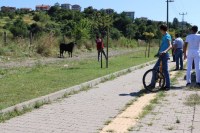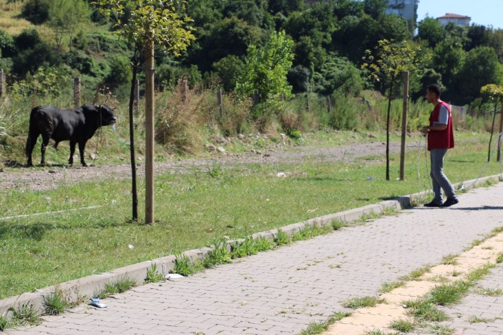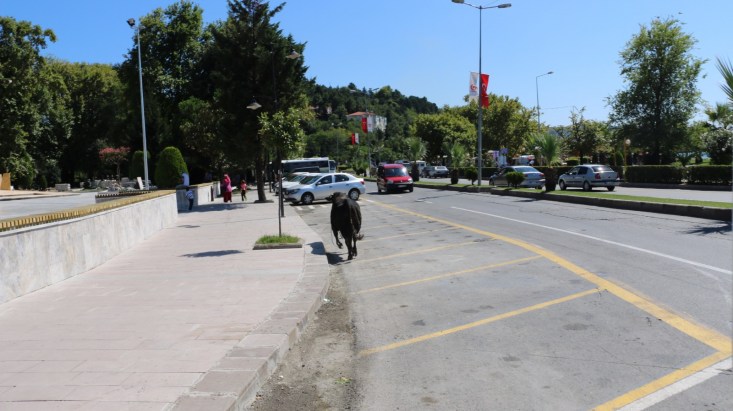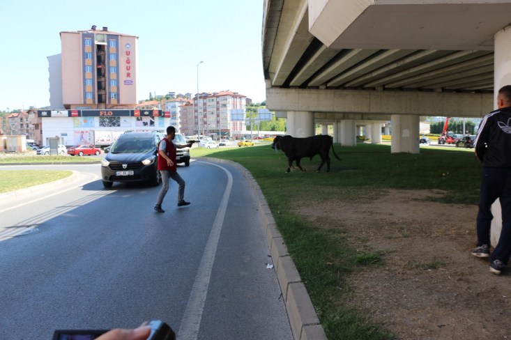 Zonguldak'ın Ereğli ilçesinde kaçan kurbanlık boğa ortalığı birbirine kattı. Yaklaşık 1 saat süren kovalamanın ardından kaçan boğa iğne ile uyuşturuldu. Yere yığılan boğa olduğu yerde kesildi.