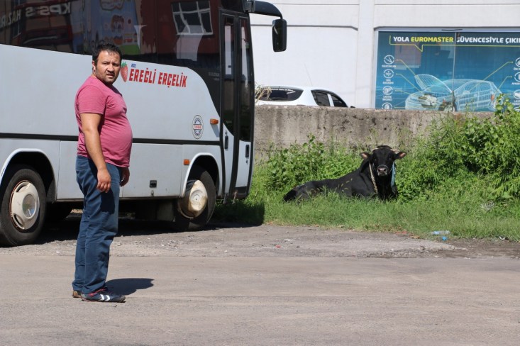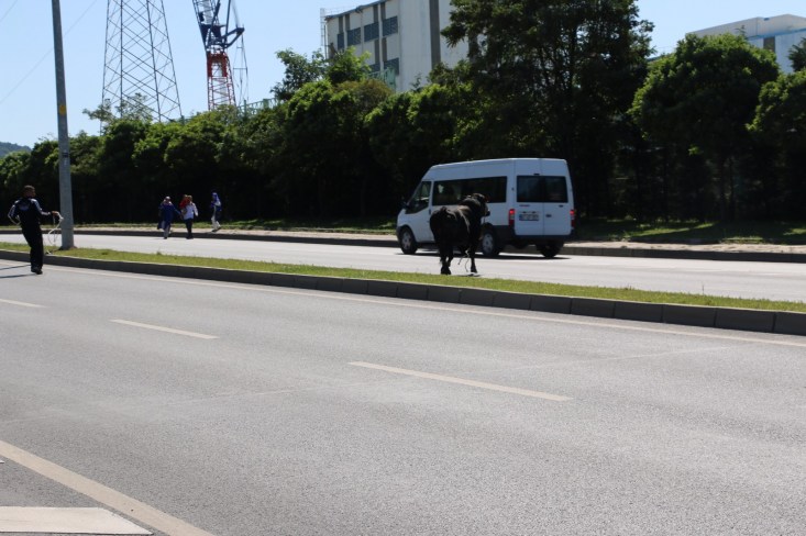Olay ilçe merkezinde meydana geldi. Alınan bilgilere göre Abalı mahallesinde Ö.D. ye ait boğa kesileceği sırada kaçtı. Abalı sokak üzerinden sahil bandında kaçan boğa burada yakalanarak demire bağlandı. Ancak kızgın boğa zinciri kopararak yeniden kaçtı. Sokakta yürüyen insanların üzerine saldıran boğa Ereğli Belediyesi Veteriner işleri müdürlüğü ekipleri tarafından uyuşturucu iğne ile etkisiz hale getirilmeye çalışıldı. Yaklaşık 15 iğne atılan boğa, ERDEMİR otoparkında yere yığıldı. İple bağlanan boğa olduğu yerde kesildi. Ereğli belediyesi Veteriner işleri müdürü Erdal Terzi, kaçan boğayı iiğne ile zarar vermeden etkisiz hale getirildiğini, ilçe genelinde de sahiplerinin yanına yaklaşamadığı iki boğanın da uyuşturucu iğne ile etkisiz hale getirildiğini söyledi.