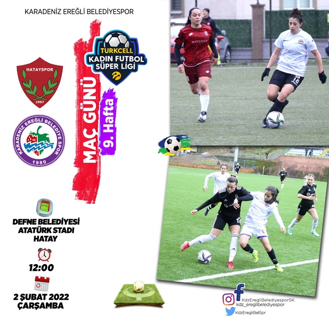 Turkcell Kadınlar Futbol Süper Ligi’nde mücadele eden Kdz. Ereğli Belediyespor 2 Şubat Çarşamba ligin 9’uncu haftasında deplasmanda Hatayspor ile karşı karşıya gelecek.