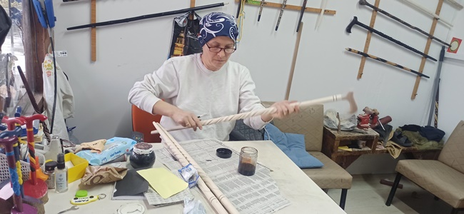 Mesleki yolculuğunu ve günlük temposunu anlatan Fatime Ayvacı, "Ev hanımıyım aynı zamanda. İki çocuğum var. Arta kalan zamanımda dükkana geliyorum. Eşimle beraber 20 yıldan beri baston yapıyorum. Bir kadının yapamayacağı, elinden gelmeyen iş yoktur. Her şeyi yapar, başarır. Baston da yapar, ev hanımlığı da yapar. Eşine destek de çıkar; çocuklarına da torunlarına da bakar. Hem anneyim hem ustayım. Kendi çapımda ustayım" dedi.