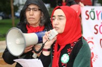 Platform Sözcüsü ve SES İlçe Temsilcisi Hamide İpek, etkinlikte Türkiye'de kadın cinayetlerinin yüzde 1400, cinsel taciz ve tecavüzün yüzde 38, cinsel istismarın yüzde 53 oranında artışına, kadını yok sayan politikaların yol açtığını belirterek şunları söyledi: