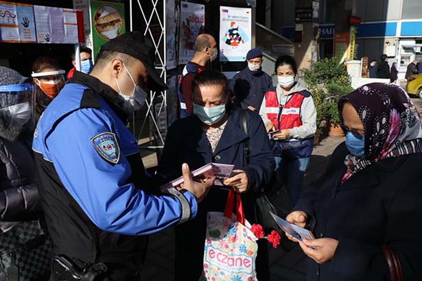 Zonguldak Emniyet Müdürlüğü, Jandarma Komutanlığı ve Aile ve Sosyal Politikalar İl Müdürlüğü Şiddet Önleme ve İzleme Merkezi, tarafından '25 Kasım Kadına Şiddete Hayır' günü nedeniyle broşür dağıtıldı.
