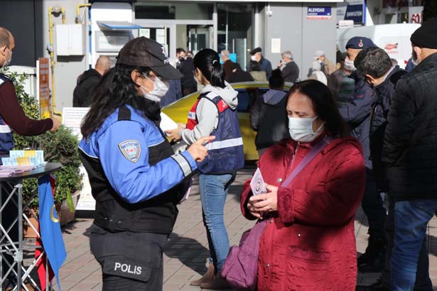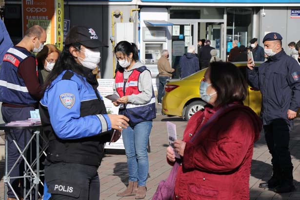 KADINA ŞİDDETE HAYIR için broşür dağıttılar