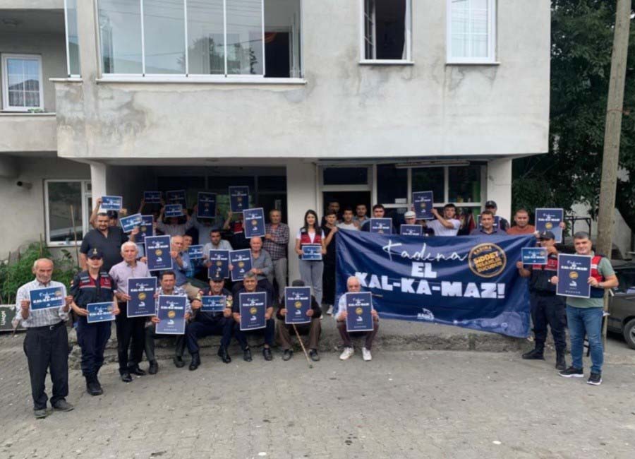 Zonguldak İl Jandarma Komutanlığı Aile İçi Şiddetle Mücadele ve Çocuk Kısım Amirliğince, Merkez Elvanpazarcık beldesi ve Merkez, Tasmacı, Elvan, Çalca köylerinde 350 erkek vatandaşa kadına yönelik şiddetle mücadelede 5 milyon erkeğe farkındalık oluşturmak maksadıyla '#KadınaElKalkamaz' sloganıyla bilgilendirme faaliyeti yapıldı.