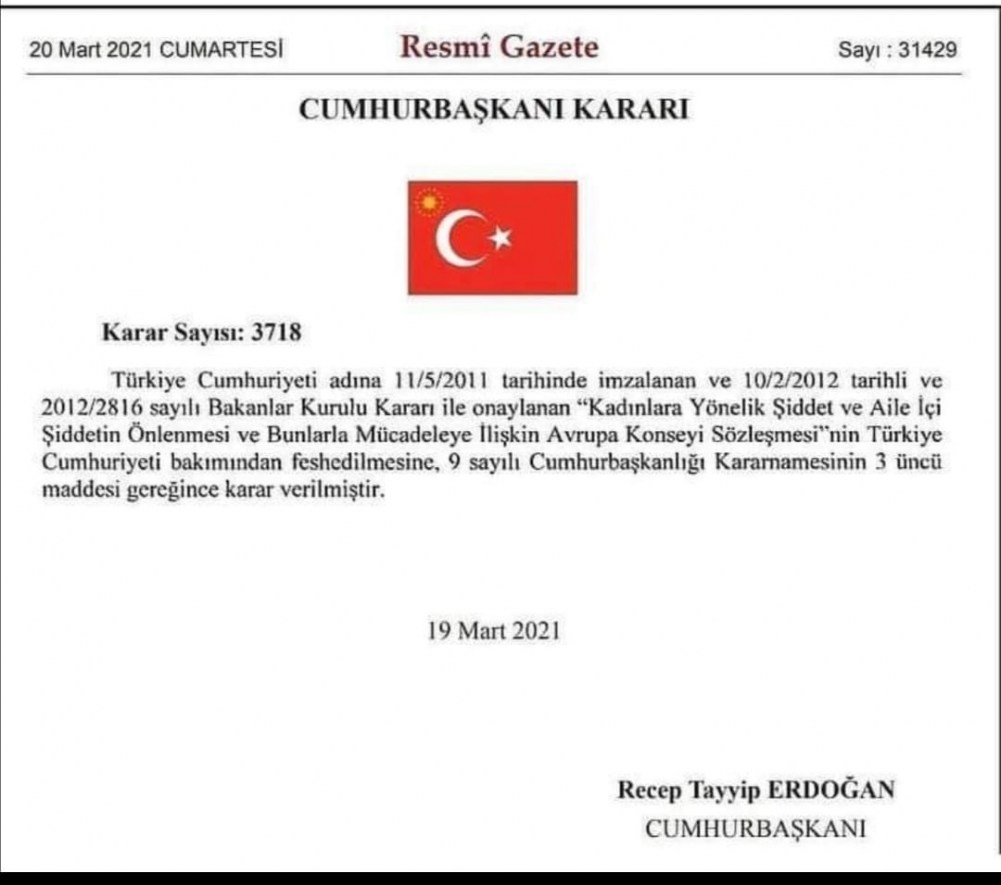 Bakanlar Kurulu Kararı ile onaylanan, “Kadınlara Yönelik Şiddet ve Aile İçi Şiddetin Önlenmesi ve Bunlarla Mücadeleye İlişkin Avrupa Konseyi Sözleşmesinin (İstanbul Sözleşmesi)” Türkiye Cumhuriyeti bakımından fesh edilmesinin Cumhurbaşkanı Recep Tayyip Erdoğan tarafından imzalanmasına tepki gösterildi.