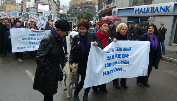 Zonguldak'ta 8 Mart Dünya Kadınlar Günü etkinlikleri renkli görüntülere sahne oldu. Yürüyüşe katılan grubun arasına giren ve "Paşa" ismi verilen sokak köpeğinin taşınan pankarta saldırması ise kadınları korkuttu.