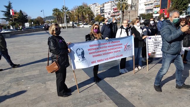 Karadeniz Ereğli CHP Kadın Kolları Başkanı Naile Bingöl, “Ülkemiz demokrasiden uzaklaştıkça, kadına yönelik şiddet hız kesmeden devam ediyor. Kadınlar sırf kadın oldukları için öldürülüyor, şiddete uğruyor. Bizler, en temel hakkımız olan yaşam hakkımıza sahip çıkmak için direniyoruz” dedi.