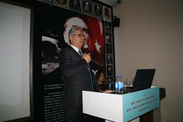 Ereğli Kaymakamı Nazım Madenoğlu, seminer açılışında yaptığı konuşmada salonda erkeklerin daha fazla yer almasının bir anlamda olumlu bir durum olduğunu belirtti.