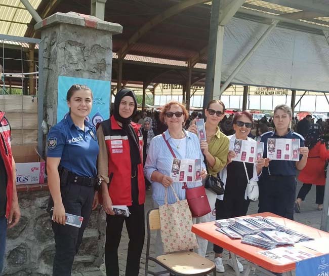 İlçede kurulan halk pazarında kadınlara birebir yapılan görüşmelerle, şiddetle mücadelede sağlanan haklar ve korunma mekanizmaları hakkında detaylı bilgi verildi. Yapılan bilgilendirmede, kadına yönelik şiddetin önlenmesine yönelik önemli bir adım olan 6284 sayılı Kanun'un sağladığı haklar anlatıldı. Ekipler, kanun kapsamında kadınların korunması, şiddet mağduru kadınlara yönelik sağlanan destekler ve koruyucu tedbirler hakkında bilgi sundu. Ayrıca, KADES uygulaması hakkında da bilgilendirme yapılarak, kadınların acil durumlarda hızlı bir şekilde polis ekiplerine ulaşmasını sağlayan bu uygulamanın nasıl kullanılacağı uygulamalı olarak gösterildi.