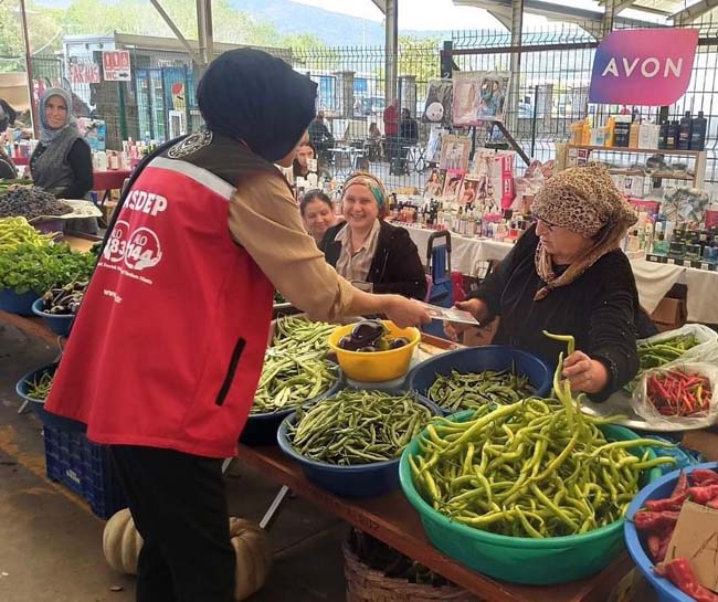 Çaycuma'da İlçe Sosyal Hizmet Merkezi Müdürlüğü, İlçe Emniyet Müdürlüğü ve Çaycuma Belediyesi zabıta ekipleri, halk pazarında KADES hakkında bilgilendirme yaptı