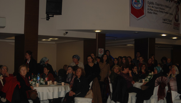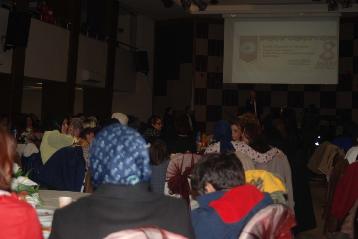 sonra 8 Mart Dünya Emekçi Kadınları Günü'nün kutlanması dolayısıyla sahneye bir