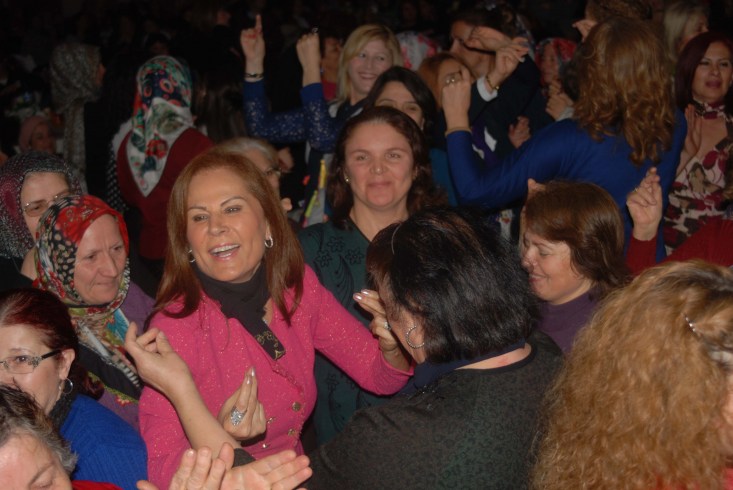 kesildi. Salondan ayrılana kadar kadınların yoğun ilgi gösterdiği Başkan